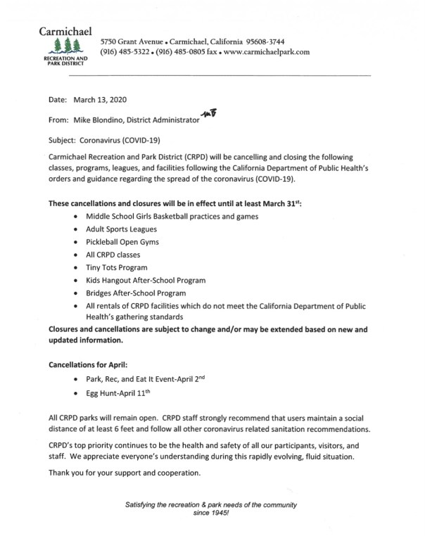 We just received notice from Carmichael Parks and Rec today: All @sacramentohoopdance @carmichaelrec classes have been canceled until at least March 31, 2020.